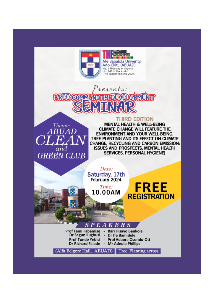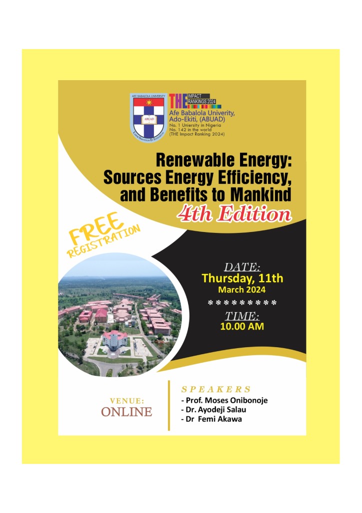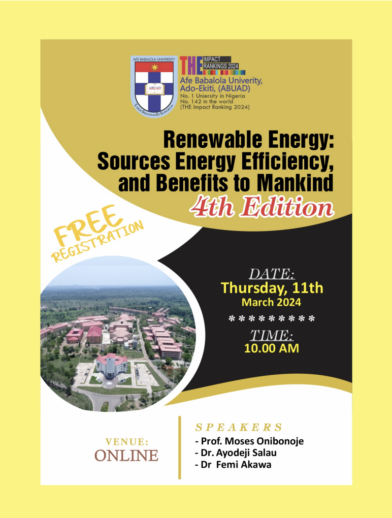 ABUAD COMMUNITY SEMINAR SERIES 2024 FOR 100% RENEWABLE ENERGY