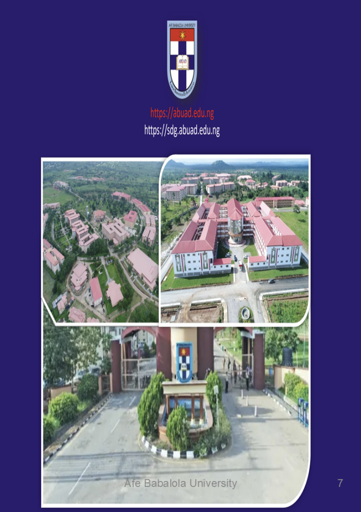 1. ABUAD Sustainable Development Centre: ABUAD has established a Sustainable Development Unit, which focuses on research, training, and community engagement on sustainable development issues. This unit is under the leadership of the Deputy Vice-Chancellor, Research, Innovation, and Strategic Partnership (DVC, ARISP). One of the cardinal objectives of the unit is to measure sustainability literacy among the students, staff members, and ABUAD community as a whole. This is done annually using the relevant metrics and key performance indicators to measure, evaluate, assess, and track their sustainability awareness and literacy improvement.