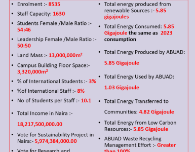 2024-FREE-ABUAD-COMMUNITY-SEMINAR-SERIESThe Research and Innovation Directorate of Afe Babalola University, Ado Ekiti (ABUAD) hosts a wide range of Community Development Seminars aimed at providing opportunities for the local community to learn about the importance of energy efficiency and clean energy. The seminars focus on energy citizenship and sustainability business, with the aim of providing the local community with tools needed to start and commercialize their own energy efficiency ventures and innovations.